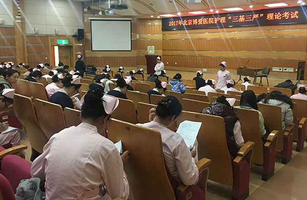 为切实加强护理人员业务学习能力,落实“三基三严”培训计划,以考促学,以学促用。12月21日中午,北京博爱医院护理部组织2017年 “三基三严”理论考试,主管护师以下职称的护理人员300余人参加。